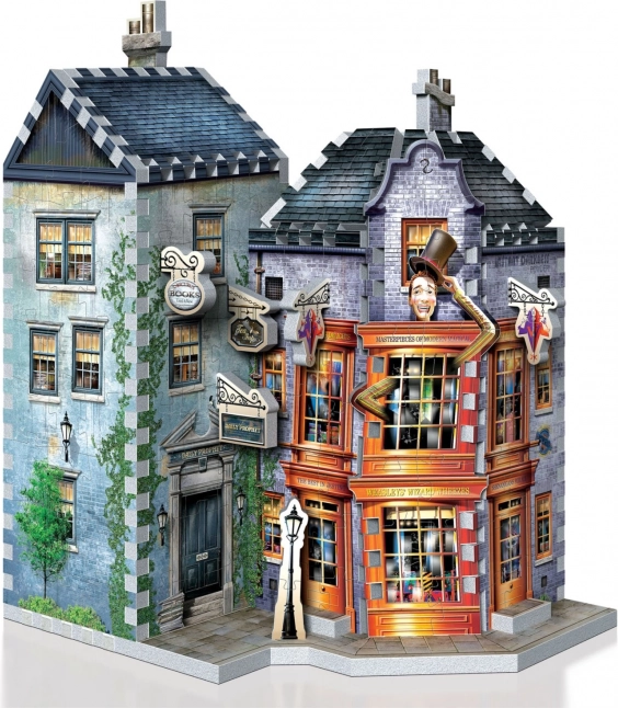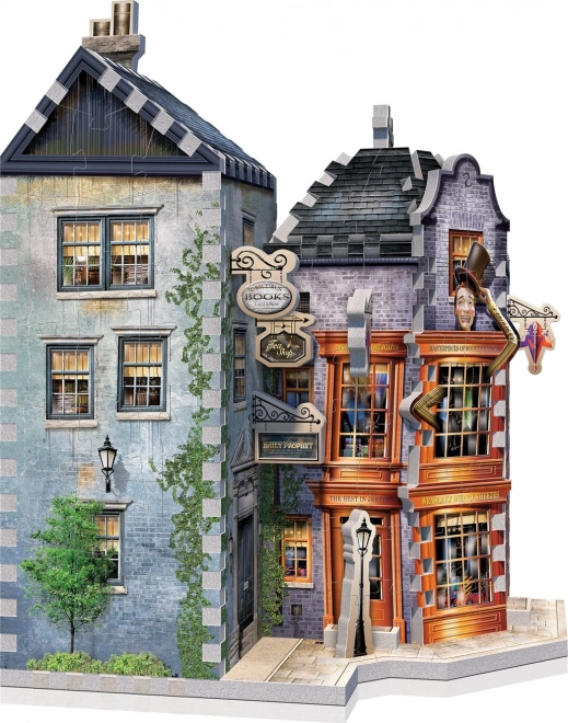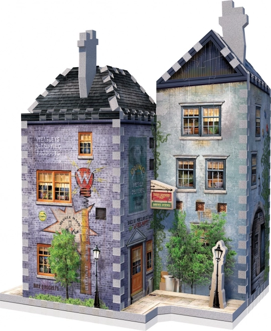 Állítsd össze a Weasley Varázsvicc Vállalatot és a Reggeli Prófétát részletgazdag textúrákkal, cégérekkel és színes homlokzati kidolgozással.