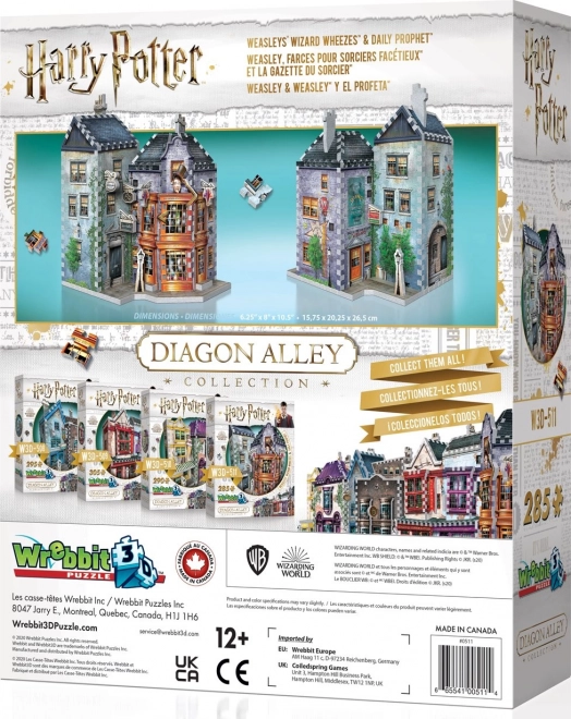 Lépj be a varázsvilágba, és rakd össze két legendás épület Weasley Varázsvicc Vállalat és a Reggeli Próféta élethű modelljét. A WREBBIT 3D puzzle speciális, extra erős anyagot használ, melynek köszönhetően az egyes darabok tartják alakjukat és illeszkedésüket ragasztó nélkül is.