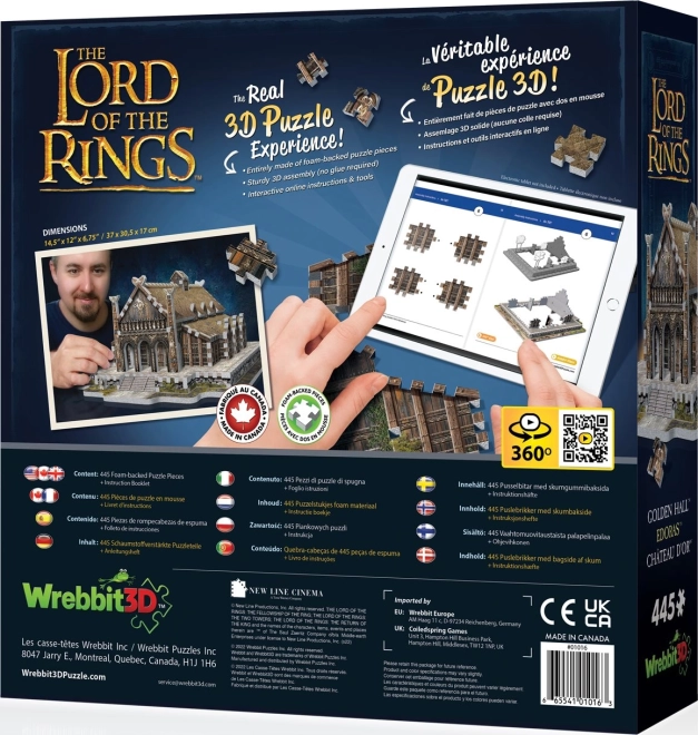 Fedezze fel a szórakozást a 3D puzzle Edoras arany csarnokának összerakásával a Gyűrűk Urából. Ezzel a modellel órákon át tartó szórakozás és alkotás várja. A puzzle speciális tartós anyagból készült, és lehetővé teszi a könnyű összerakást és újbóli szétszerelést eszközök vagy ragasztó használata nélkül.