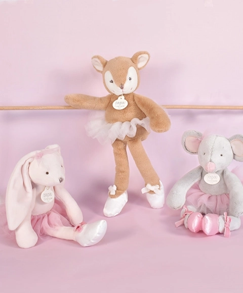 Ez a nagyon puha plüss játék egérke balerina jelmezbe öltözött, tüll szoknyával és szatén balerinacipőkkel, amelyek bársony masnival díszítettek. A gyermekek számára lágy és trendi színösszeállításokat kínál, amelyek vonzzák a kisebb és nagyobb gyerekeket is. Ideális nemcsak otthoni játékhoz, hanem sétákhoz is.