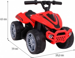 Szerezzen örömet a gyerekeknek a Little Monster quaddal, amelyet kifejezetten a kis vezetők számára terveztek. A kompakt méretek (70 × 38,5 × 42 cm) és a 24 × 13 cm-es ülés kényelmet és biztonságérzetet garantálnak már az első kormány mögötti próbálkozásoknál is. A 25 W-os, mégis kíméletes hajtás a 6 V / 4,5 Ah akkumulátorral elegendő energiát biztosít a biztonságos gurulásokhoz.