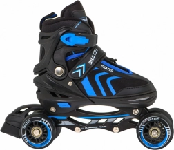 Univerzális szett kis korcsolyázóknak, amely 4 az 1-ben megoldást kínál: inline görkorcsolya, négykerekes görkori és jégkorcsolya, a feltétek gyors cseréjének lehetőségével. A ötfokozatú méretszabályzás 29–33, a kényelmes EVA hab Velvet borítással és a masszív félkemény konstrukció kényelmet, stabilitást és biztonságot nyújt. Az alumínium váz, az ABEC-7 csapágyak és a PU kerekek 64 mm 85A sima és magabiztos haladást biztosítanak, a fékezésről a jobb lábas fék gondoskodik.
