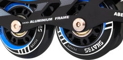A biztonságos rögzítést hármas zárás biztosítja: fűzés, tépőzáras pánt és reteszeléssel ellátott csat a véletlen kinyílás ellen. Az inline/görkori rész alumínium váza növeli a merevséget és az élettartamot, a 64×24 mm-es, 85A keménységű PU kerekek ABEC-7 csapágyakkal sima gurulást nyújtanak. Téli használatkor értékelni fogod a jégkorcsolya rozsdamentes pengéit és a praktikus élvédőket.