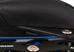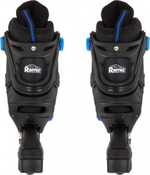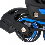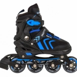 Fűző, tépőzáras pánt és reteszelhető csat tartja stabilan a lábat. A jobb korcsolyán található fék segít a kontrollált megállásban.