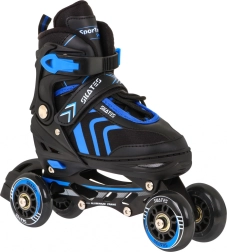 Univerzális 4 az 1-ben gyerek szett egész éves szórakozáshoz: görkorcsolya, jégkorcsolya és átszerelhető konfiguráció egyben. A 5 fokozatú állíthatóságnak (34–38), a alumínium váznak, a 70×24 mm-es PU kerekeknek 85A keménységgel és az ABEC-7 csapágyaknak köszönhetően sima futást és stabilitást kínál. A kényelmet a félkemény konstrukció, a szellőzés és a EVA habból készült, Velvet anyaggal borított puha betét biztosítja.