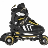 Univerzális 4 az 1-ben gyerek szett, amely egy felszerelésben ötvözi az in-line korcsolyát, a quad/trek korcsolyát és a téli jégkorcsolyát. A ötfokozatú méretállításnak (34–38), a kényelmes belső cipőnek puha EVA habbal és a biztonságos hárompontos rögzítésnek köszönhetően ideális a gyors növekedéshez és a biztonságos haladáshoz. Az alumínium váz, PU kerekek 70×24 mm, ABEC-7 csapágyak és a rozsdamentes pengék sima siklást és hosszú élettartamot biztosítanak.