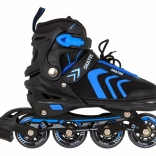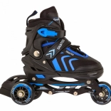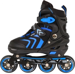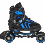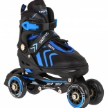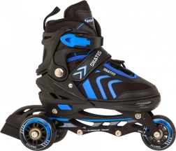 Univerzális 4 az 1-ben gyerek szett, amely egyesíti az inline, a jégkorcsolya és a quad változatot egyben. Az 5 fokozatú méretállításnak (39–43), a alumínium váznak, a PU kerekeknek 72 mm / 85A és az ABEC-7 csapágyaknak köszönhetően sima futást és hosszú élettartamot kínál. A kényelmet a félig puha cipő szellőzéssel, a profilozott EVA betét és a hármas rögzítés biztosítja a láb biztonságos tartásához.