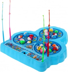 Szórakoztató gyermek horgászjáték három forgó tavacskával, amely órákon át tartó örömöt nyújt 2–4 játékos számára. A színes készlet 21 hallal és 4 horgászbottal fejleszti a finommotorikát, a reflexeket és a kéz–szem koordinációt. Csak helyezze be az elemeket, indítsa el a forgást, és fogja ki a halakat, amelyek rendszeresen „felbukkannak” a vízből.