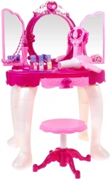 A szett része a stabil asztalka, a kényelmes kisszék és a bőséges smink- és díszítőkészlet. A működő, elemes hajszárító hangot ad és enyhe légáramot fúj, ami még valóságosabbá teszi a játékot. A készlet fejleszti a kreativitást, a finommotorikát és a szerepjátékot.