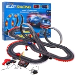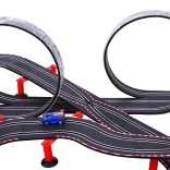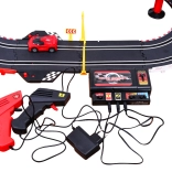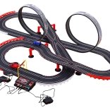 | - 2 versenyautó, - 2 távirányító, - pálya elemekre bontva, - sorompók, - közlekedési táblák, - tápegység, | |