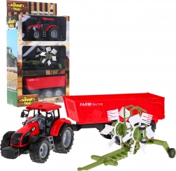 Valósághű készlet 3 éves kortól kis gazdáknak: piros traktor súrlódásos meghajtással, billenős pótkocsival és működő rendterítővel. Masszív kivitel, mozgó elemek és a felépítmények le- és felcsatolásának lehetősége támogatják a kreatív játékot és a képzelet fejlődését.