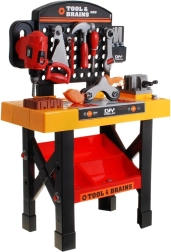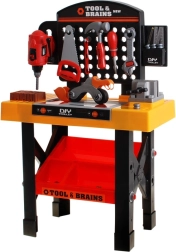 Ez a nagyszerű szerszámasztal minden kis szerelő álma. A gyermek valódi javítónak érezheti magát, aki saját műhelysarkot vezet. Az asztal széles választékban kínál eszközöket, amelyek a praktikus állványra vannak elrendezve.