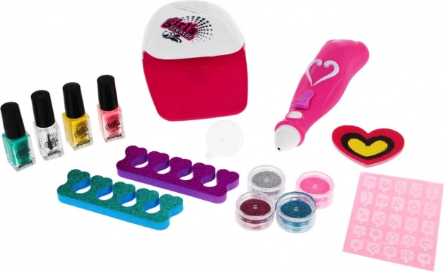 Változtassátok a gyerekszobát egy kis manikűrstúdióvá. Ez a kreatív szett 5 éves kortól ötvözi a körömszárítót, a csillámszóró készüléket, a színes lakkokat és díszeket, hogy a gyerekek biztonságosan és szórakozva alkothassanak saját ragyogó mintákat. A lakkok nem mérgezőek, és könnyen, egyben lehúzhatók, így a kísérletezés gyors és stresszmentes.