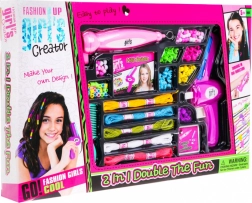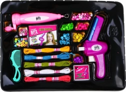 Kreatív 2 az 1-ben készlet kis tervezőknek, amely ötvözi a haj gyöngyökkel való díszítését és a karkötők készítését. A több mint 100 dekoratív elemnek, a praktikus fűző- és befonóeszközöknek, valamint a színes zsinóroknak köszönhetően egyedi díszek születnek, pontosan a gyerekek fantáziája szerint.