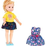 A babának van egy alap szettje, és ezen felül virágmintás ruha is – a gyerekek kedvük és történetük szerint kombinálhatják a darabokat.
