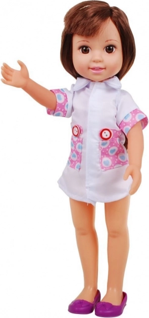 Ez a gondosan kidolgozott nővér baba utánzó játékra ösztönzi a gyerekeket, és empátiára, valamint másokról való gondoskodásra tanít. A valósághű kiegészítőknek, mint a sztetoszkóp, hőmérő és fecskendő, köszönhetően a kis orvosok kipróbálhatják az alapvető vizsgálatokat, és saját egészségügyi történeteket alkothatnak.