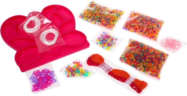 - Pillangó alakú tálca, gyöngykeverék (apró, közepes, nagy), szívecskék, zsinór/damil