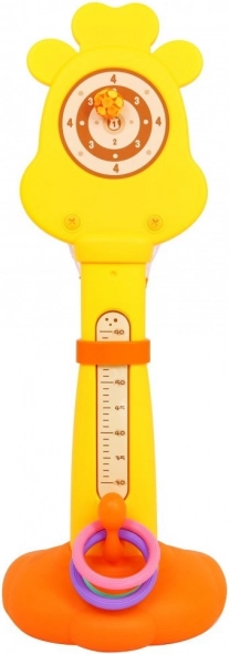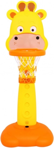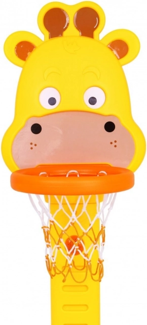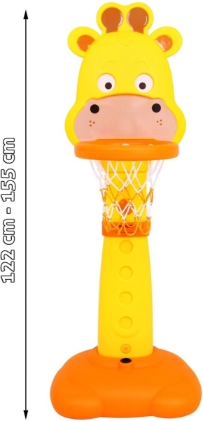 A bájos zsiráf alakú szett mozgásra ösztönzi a gyerekeket, fejleszti a szem-kéz koordinációt és támogatja az egészséges szokásokat. A kosár magassága könnyen igazítható a gyermek életkorához és készségeihez (125–155 cm), így együtt nő vele. A masszív műanyag szerkezet és a nagy talp biztosítja a játék alatti stabilitást.