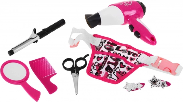 Ez a kreatív fodrászkészlet minden kis stylistot örömmel tölt el, akik szeretik a frizurákat és a szerepjátékot. A gyermek hajszárító gombnyomásra valósághű fújási hangot ad ki és enyhe légáramot hoz létre, így a játék élethűnek hat. Minden könnyű és tartós műanyagból készült a közkedvelt rózsaszín színben.