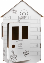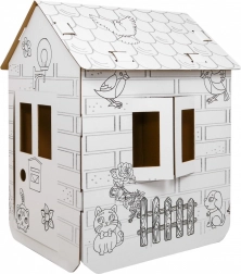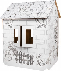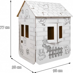 A házikó gyorsan, szerszámok nélkül összerakható. A könnyű karton biztonságos a gyerekeknek, és egyszerűen hordozható, illetve elrakható.