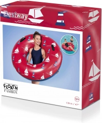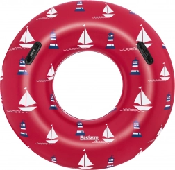 Élvezze a nyarat a tágas, 119 cm átmérőjű BESTWAY felfújható úszógumival. Tartós vinyl, kényelmes 2 fogantyú és biztonsági szelep gondoskodik a stabilitásról, kényelemről és a vízi szórakozásról. Stílusos tengerész dizájn piros színben, amely jól mutat medencében és strandon is.
