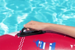 A praktikus biztonsági szelep megkönnyíti a felfújást és megakadályozza a levegő szivárgását. A piros szín vitorlás és világítótorony motívumokkal egyedi stílust ad, amely bármelyik medencében kitűnik.