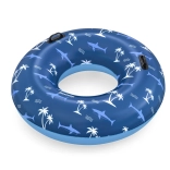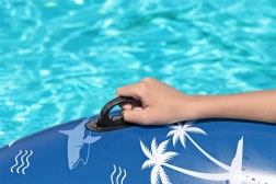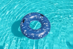 A BESTWAY felfújható úszógumi trópusi, cápás és pálmás mintával ideális medencébe és nyugodt állóvizekre egyaránt. A nagy, 119 cm-es átmérő kényelmes megtámasztást ad, míg a két integrált fogantyú megkönnyíti a felülést és a kapaszkodást még játék közben is.