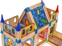 A szerkezeti hasábok és a nyomtatott elemek kombinációja lehetővé teszi, hogy a gyerekek változatos házikókat, kerítéseket, kapukat és egész kisvárost alkossanak. Fejleszti a képzelőerőt és a türelmet.