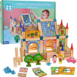 Minden elem kellemes tapintású, sima felületű fából készült, ideális a kis kezek számára. A készlet támogatja a térbeli képzelőerő, a logikus gondolkodás és a kreatív történetmesélés fejlődését. A szerkezeti és játékelemek kombinációja ösztönzi a szabad játékot és a közös építést a szülőkkel.