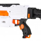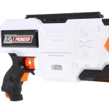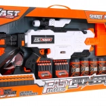 A FAST PIONEER elektromos blaster beltéren és kültéren is akciódús szórakozást nyújt a gyerekeknek. A félautomata elsütésnek köszönhetően elég lenyomva tartani a bekapcsológombot, célozni és meghúzni a ravaszt – minden húzás egy pontos lövést jelent. Az alsó tár akár 10 lövedéket is befogad, a állítható irányzék pedig megkönnyíti a célok eltalálását.