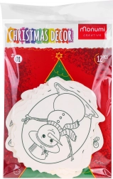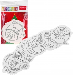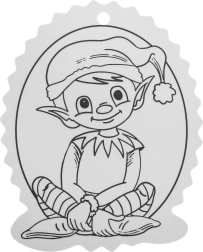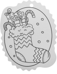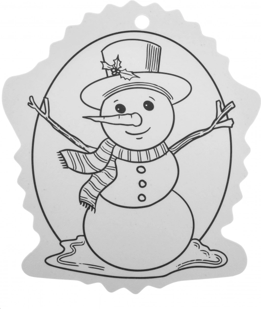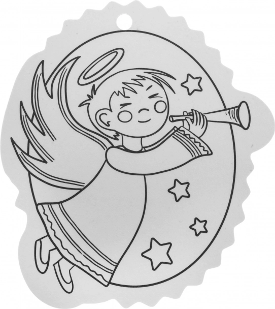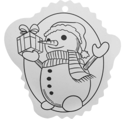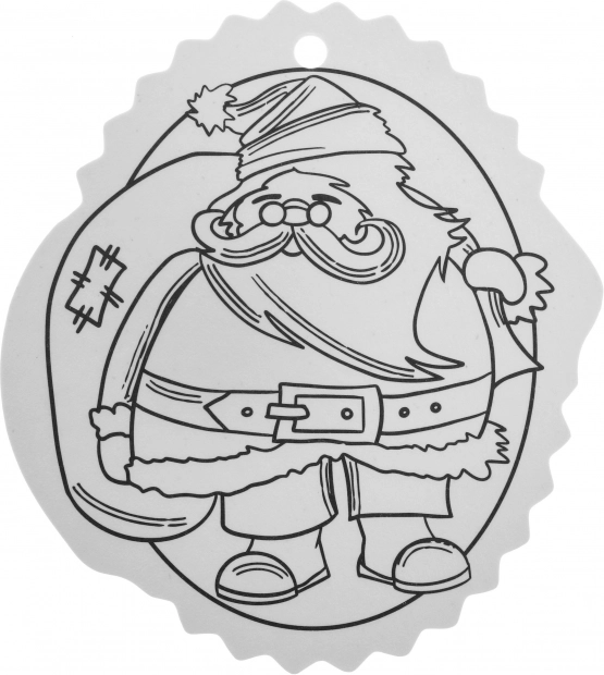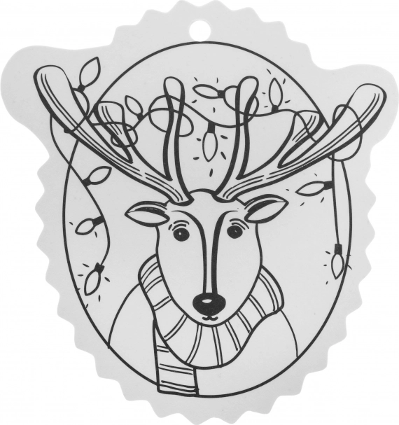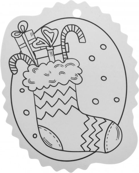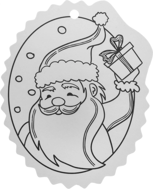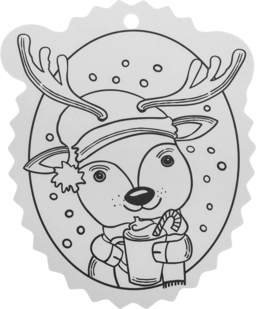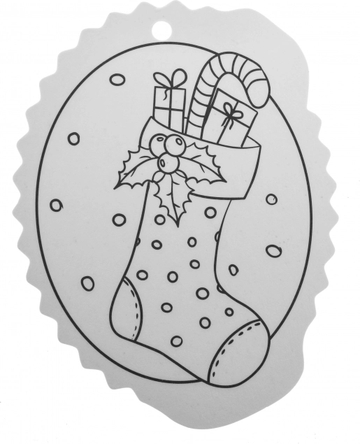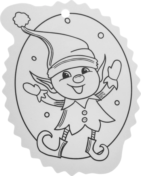 A fekete-fehér kontúrok megkönnyítik a színezést, a felső részen lévő lyuk pedig gyors akasztást biztosít a karácsonyfára vagy ajándékra.