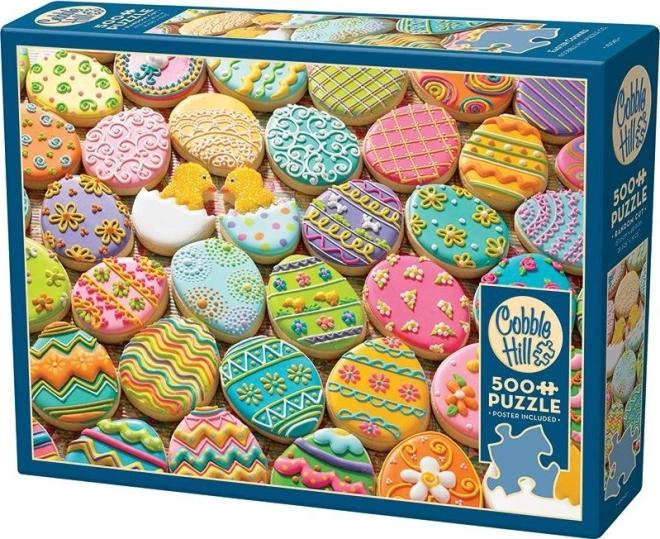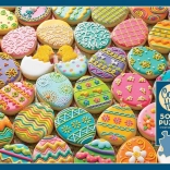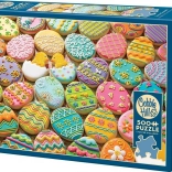 A COBBLE HILL puzzle vidám, húsvéti kekszeket ábrázoló motívuma minden kihívást kedvelőnek örömet szerez. A speciális, nem konvencionális vágás nem követi a szokásos rácsszerkezetet, így a sarkok és szélek nem mindig esnek egy vonalba, a darabok pedig rendhagyó alakúak. Ennek köszönhetően a kirakás szórakoztatóbb és nehezebb, mint a hagyományos puzzle-öknél.