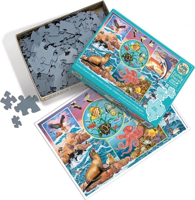 Élvezze a közös kirakózást a COBBLE HILL – Óceán varázsa családi puzzle-lel, 350 darabbal. A különleges csomagolás háromféle darabméretet kombinál gyerekeknek, szülőknek és nagyszülőknek, így mindenki megtalálja a neki valót. A speciális, szabálytalan stancolás fokozza a szórakozást és a kihívást, miközben a nagylelkű 67,6 × 48,9 cm-es méret lenyűgöző kész képet garantál.