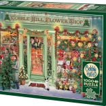 Fedezze fel az ünnepi hangulat varázsát a részletgazdag, karácsonyi díszbe öltöztetett virágüzlet ábrázolásával. A COBBLE HILL puzzle-t a találékony, szabálytalan stancolás jellemzi – a sarkok és élek nem egy vonalban helyezkednek el, a formák pedig szokatlanok. Ez növeli a nehézségi szintet és a kirakás élményét, ideális a lelkes kirakórajongóknak.