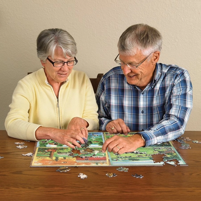 A COBBLE HILL „Vidéki barátok” puzzle színes és nyugalmas vidéki jelenetet kínál állatokkal és piros csűrökkel, amely elbűvöli a természet szerelmeseit. Az extra nagy darabok kényelmes fogást biztosítanak, és segítik a finommotorika, valamint a térbeli észlelés fejlesztését.