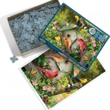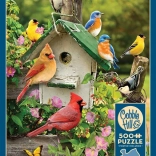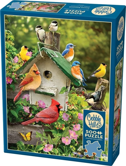 Stílusos COBBLE HILL puzzle a „Nyári madárodú” motívummal, 500 darabbal és nem hagyományos stancolással, szabálytalan formákkal, amelyek nagyobb kihívást és hosszabb szórakozást nyújtanak. A csomag része egy 30,5 × 22,9 cm-es mintalap; az elkészült kép mérete kb. 48,9 × 67,6 cm.