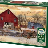 Élvezze a téli hangulatot a Cobble Hill Tél a farmon, 1000 darabos kirakóval. A szabálytalan vágás szokatlan formái nagyobb kihívást jelentenek, mint a hagyományos rácsos elrendezés. A csomag része egy 31,6 × 22,9 cm-es poszter; az elkészült kép mérete kb. 67,6 × 48,9 cm.