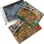 Stílusos puzzle horgászcselek motívummal – ideális választás mindenkinek, aki szereti a kihívásokat és a precíz kivitelezést. A COBBLE HILL gyártó speciális stancolást alkalmaz, amely nem követi a klasszikus rácsot, így a darabok formái változatosak, a kirakás pedig érdekesebb és magával ragadóbb.