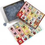 A speciális kivágás, amely nem szabványos rácson alapul, nehezíti a puzzle kirakását a darabok szokatlan formái miatt. A csomag része a 31,6 x 22,9 cm méretű minta, amely segít az összeállítás során.