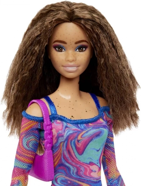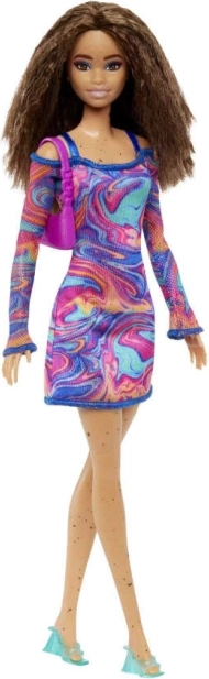 A Barbie Fashionistas babák friss szemléletet hoznak a divatba, a stílusba és az egyéniségbe. Ez a baba elbűvöl a korallszínű, rózsaszín és kék árnyalatok örvényével a márványos, szivárványos mintájú ruhán, hálós ujjakkal és trendi kiegészítőkkel. Ideális azoknak a gyerekeknek, akik szeretnek szetteket kombinálni és saját történeteket alkotni.