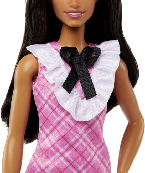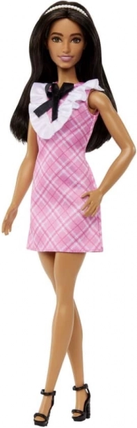 A BARBIE Fashionistas babák a sokszínűséget ünneplik, és megmutatják, mennyire szórakoztató a személyiséget divaton keresztül kifejezni. Ez a baba hosszú, sötét hajával és gyöngyös fejpántjával, valamint rózsaszín kockás ruhájával, feltűnő fodros gallérjával és fekete masnijával hívja fel magára a figyelmet. A kidolgozott részleteknek és az időtlen stílusnak köszönhetően tökéletes a mindennapos játékhoz és a gyűjtemény bővítéséhez is.