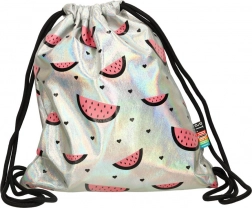 Könnyű és stílusos tornazsák holografikus hatással és játékos dinnyemintával. Fő, húzózsinórral zárható rekesszel, praktikus elülső cipzáras zsebbel és erős vállpántként szolgáló zsinórokkal a kényelmes viselésért. Ideális iskolába, testnevelésre, szabadidőhöz és városi sétákhoz.