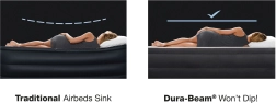Kétszeres falú INTEX felfújható ágy Dura-Beam Fiber-Tech technológiával, nagy fekvőfelülettel, integrált háttámlával és beépített elektromos pumpával a gyors felfújáshoz és leeresztéshez. A padlótól mért 46 cm magasság és a puha velúr felület kényelmet, stabilitást és letisztult megjelenést biztosít. A 272 kg maximális teherbírás megbízható alvást nyújt két személy számára.