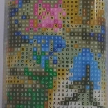 Gyémántfestés – menet: A vászon felső oldala ragasztóval van bevonva és átlátszó fóliával fedett. A fóliát fokozatosan, részenként húzza le, ahogy a kövecskéket felhelyezi. A vásznon található jelek megfelelnek a mellékelt legendának, és a számmal jelölt zacskókhoz tartoznak. A megfelelő zacskóból öntse a kövecskéket a tálcára, vegyen viaszt a toll hegyére, és kezdje el kirakni a képet a kövecskékkel.