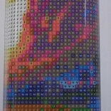 Eljárás: A vászon felső része ragasztóval van bevonva és átlátszó fóliával fedett. A fóliát fokozatosan tárja fel, így megakadályozza a ragasztóréteg szennyeződését. A vásznon jelölések találhatók az egyes kőcsomagokhoz. Öntse a köveket a tálcába, a viaszba mártott tollal vigye fel őket. Egy szín befejezése után tegye vissza a köveket a zacskóba, és folytassa a következővel.