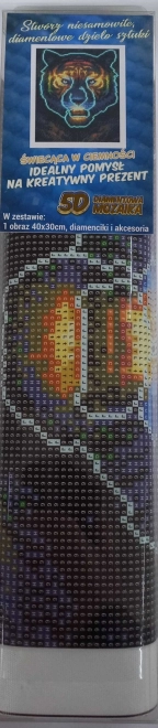 Fedezze fel a kicsiknek és nagyoknak szóló pihentető kikapcsolódást: gyémántfestő készlet tigris motívummal, 30 × 40 cm méretben. A kövecskék egy része megvilágítás után a sötétben világít, így a kész kép varázslatos hatású. A csomagban minden szükséges megtalálható – előnyomott vászon, applikátor, viasz, tálka és színes kövecskék. Az alkotás egyszerű, szórakoztató, és nem igényel művészi készségeket.