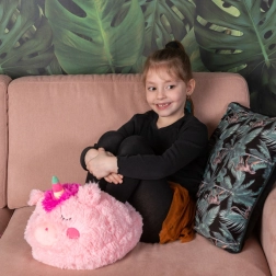 Stílusos rózsaszín unikornis színes szarvval, amely első pillantásra elragadtat, és otthonosabbá tesz bármely nappalit vagy gyerekszobát.