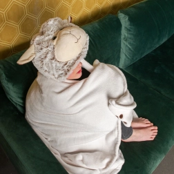 Bugyolálja be a gyerekeket pihe-puha kényelembe a bárány formájú kapucnis takaróval. A szuperpuha polár anyag, az állatos mintájú kapucni és a sarokba helyezett mancszsebek otthon és útközben is meleget, szórakozást és biztonságérzetet adnak.