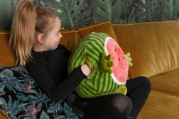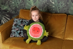 Cozy Noxxiez Dinnye egy plüss párna, kézmelegítő és hűséges társ egyben. Puha textúrája és játékos dizájnja ideális társsá teszi ezt a párnát gyerekek számára utazáskor és otthon.