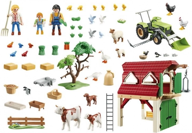 A szett tartalmaz valósághű elemeket, mint a traktor, pajta és figurák, amelyek lehetővé teszik a gazdálkodási tevékenységek szimulálását.